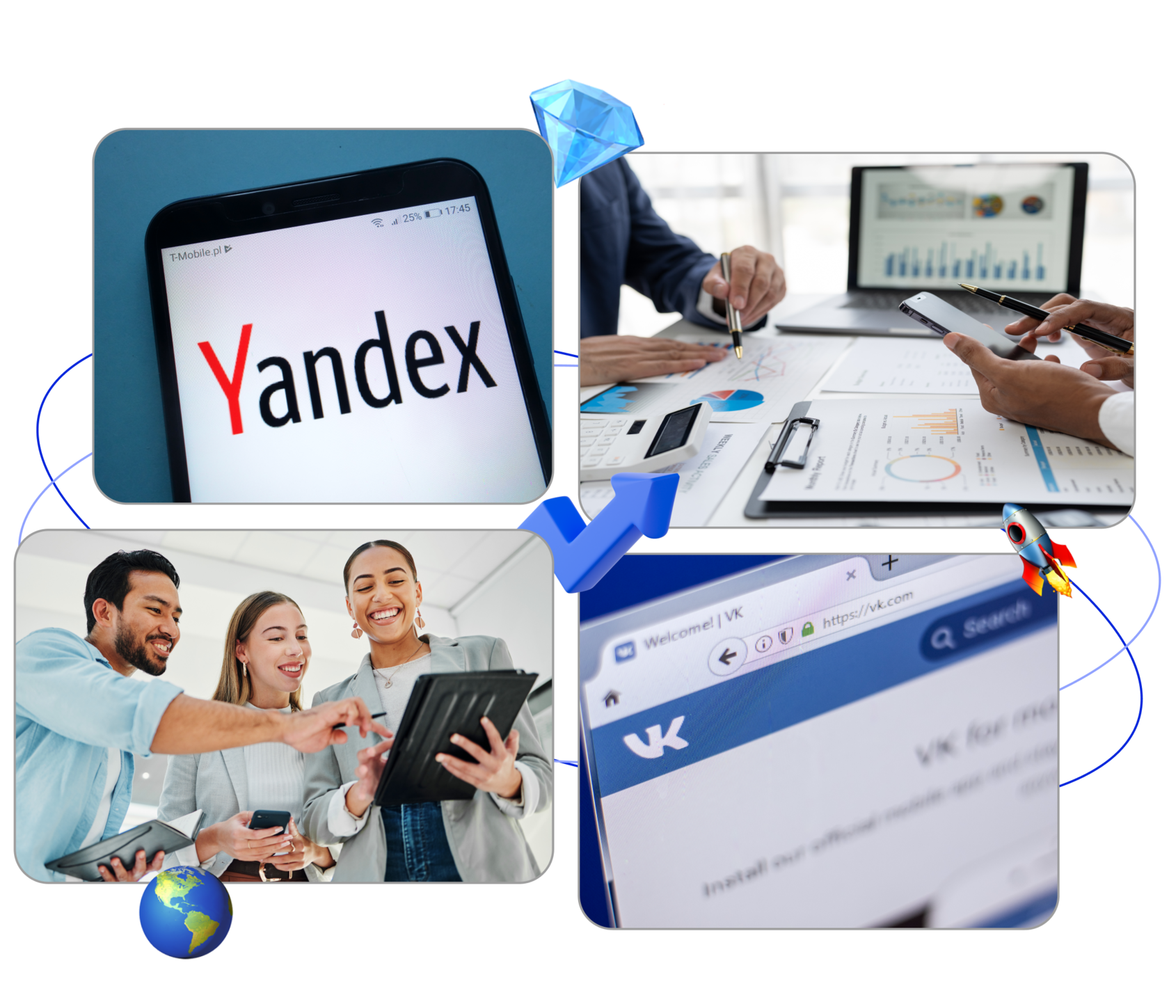 我们负责针对俄罗斯市场进行正确、合规的广告设置:Yandex.Direct、VK Ads 等。您无需担心广告标签问题:从接收代币到向广告数据运营商提交报告,一切都由我们负责。